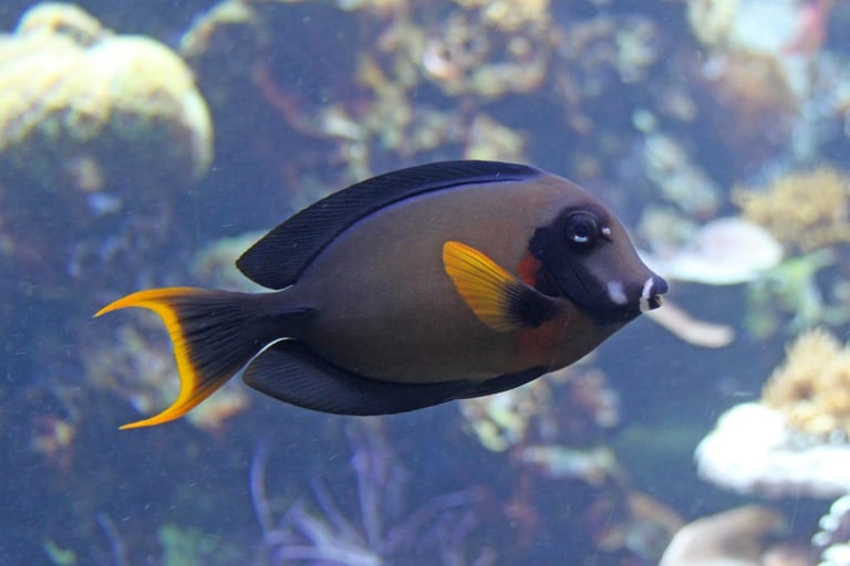Chocco is mimic tang - chocolate surgeonfish ,awesome orange chocolate hue on such a stunning specimen ...handsome pretender !